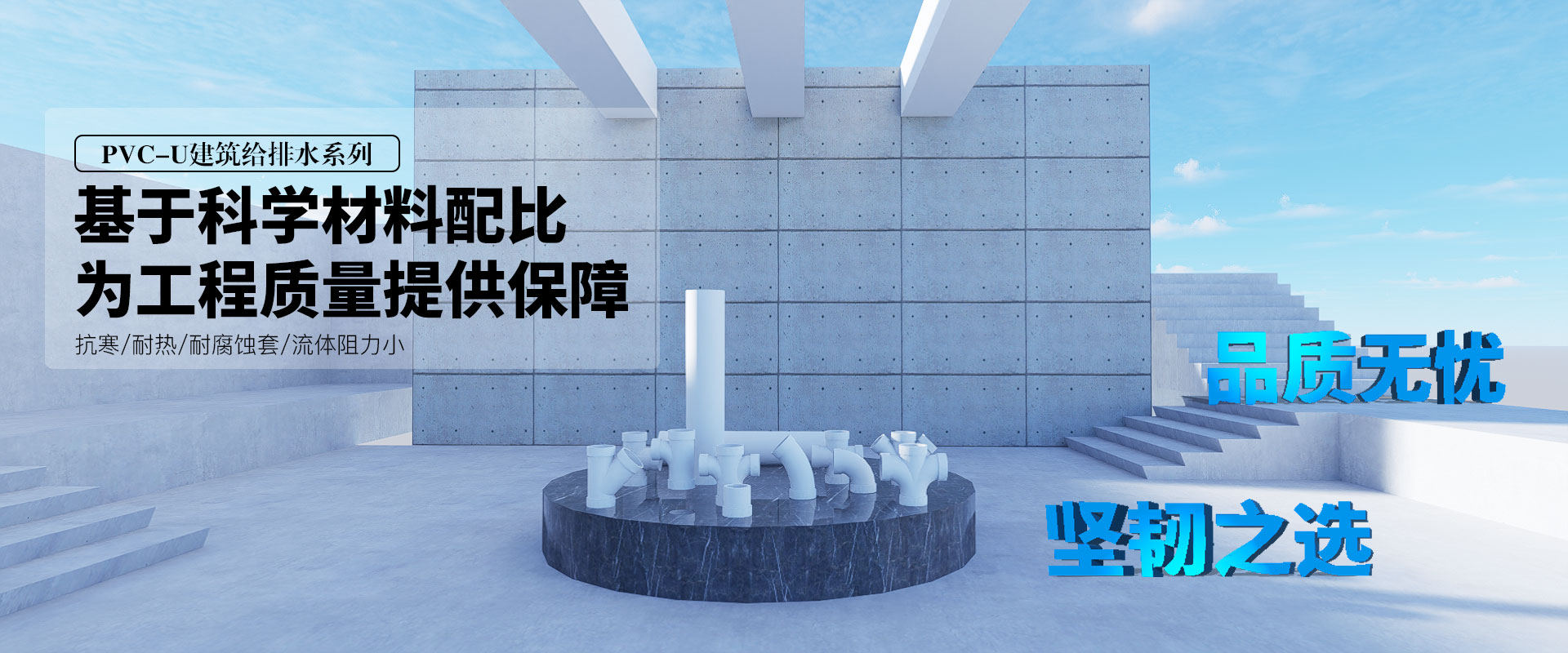 公司產品被廣泛應用于給排水、電力通信、燃氣、地暖及家庭住宅裝潢等。主要產品為:PP-R給水管道系列、PVC排水管道系列、PE-RT地面輻射采暖管系列、PE-RT阻氧管、PE給水管系列等。